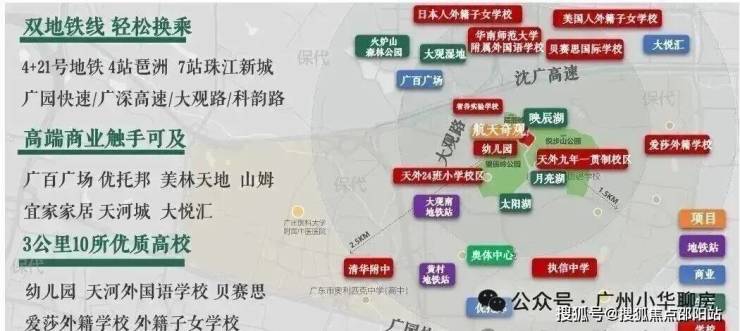 保利辰园湖境由央企保利发展倾力打造,落址天河智谷世界大观板块核心,地处天河智慧城与奥体板块交汇处,承接金融城、智慧城外溢红利,依托广州人工智能与数字经济试验区产业优势,周边网易、小鹏等总部企业环绕,地段成长性突出。距地铁21号线大观路站约1.7公里,接驳广园快速等主干道,自驾便捷,是天河稀缺的低密湖居改善与刚需兼顾型项目。