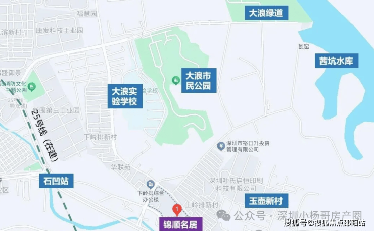 锦顺名居,北靠岭排围村,左邻大船坑市场,右近黄麻埔旧村,南边一路之隔接壤大浪中心区,与规划中的大浪时尚创意小镇相隔不远,特别距离华为在观澜拿下的大宗产业园占地76万㎡地块约6公里左右。