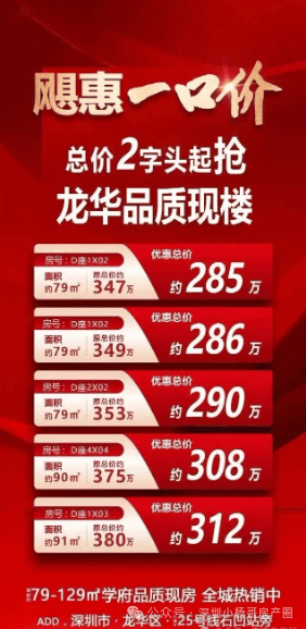 龙华大浪,锦顺名居于2021年7月6日取证入市,推出2栋B/C/D座,共520套房源,面积78-81㎡的3房1卫,90㎡的3房2卫,106-123-129㎡的4房2卫户型,备案均价5.39万/㎡,备案单价4.78-5.87万/㎡,总价416-945万/套,毛坯现房(2021年8月份交房)。