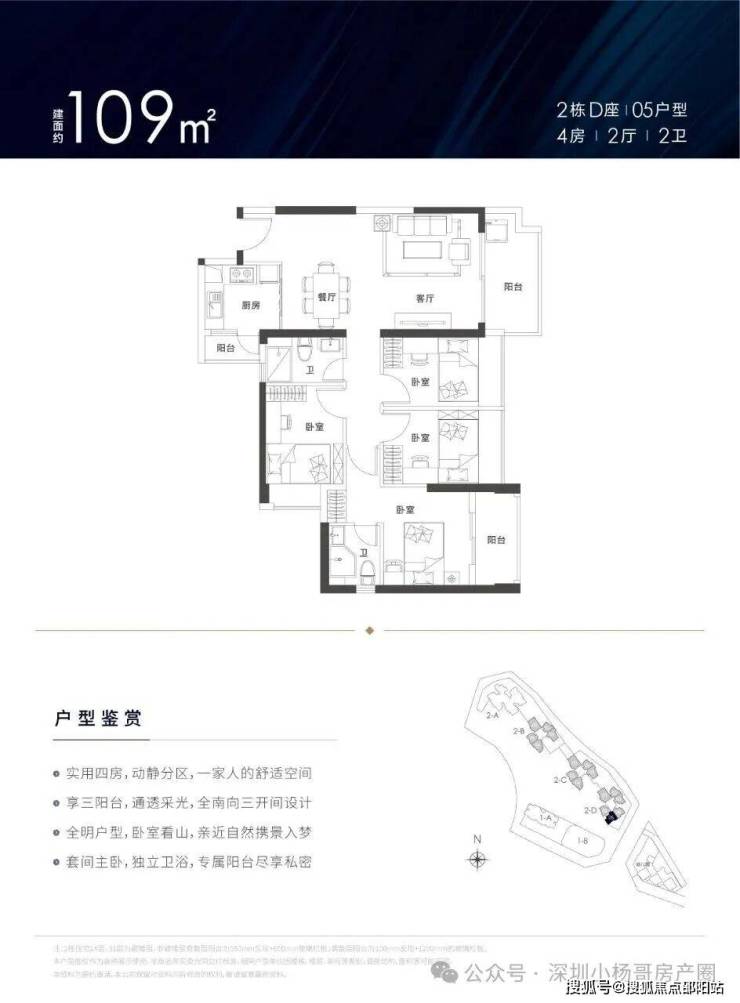 106㎡的4房2厅2卫,设计的竖厅格局,客厅主卧双阳台设计,厨房也带小阳台,三开间朝南,客厅朝西南向,高层可看山景。