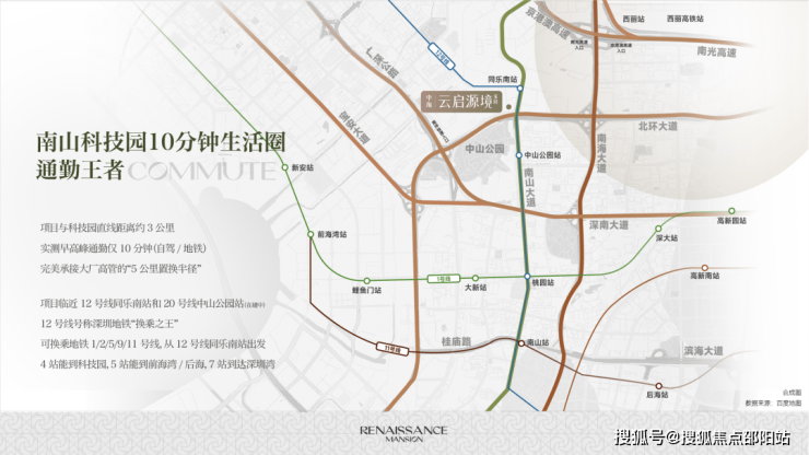 项目距离12号线同乐站直线距离约300米,周边还有在建的15号线同乐关站,贯穿前海、后海、南山、宝安等重要片区,环经济发展核心区域。