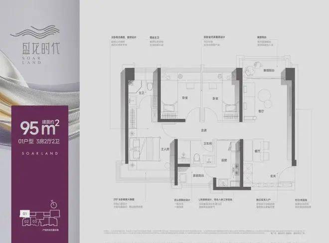 户型是一大亮点!95㎡的3房2厅2卫和99㎡的3+1房2厅2卫,都是南北通透的设计,得房率约78%(不含赠送)。户型设计,既能满足居住需求,又能保证生活的舒适度。