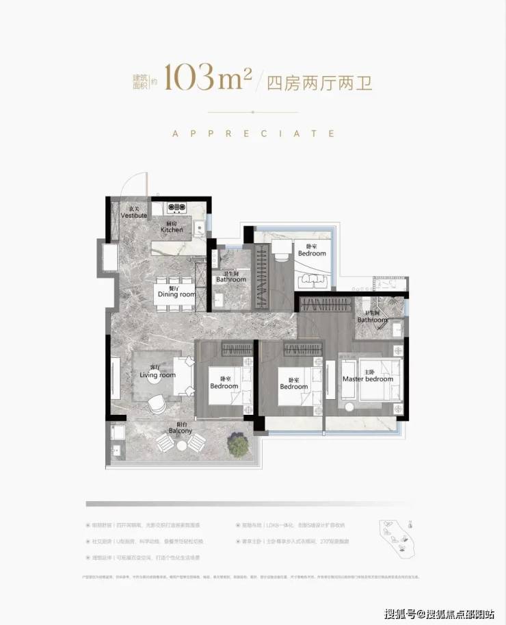 建面约103-188㎡南向阔景四房