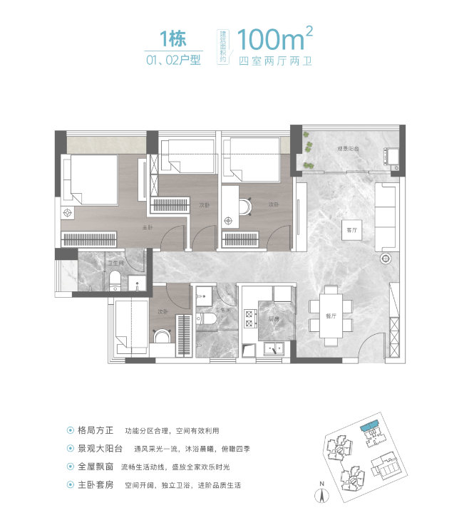 100㎡4房2卫637-662万 单价:6.37-6.62万
