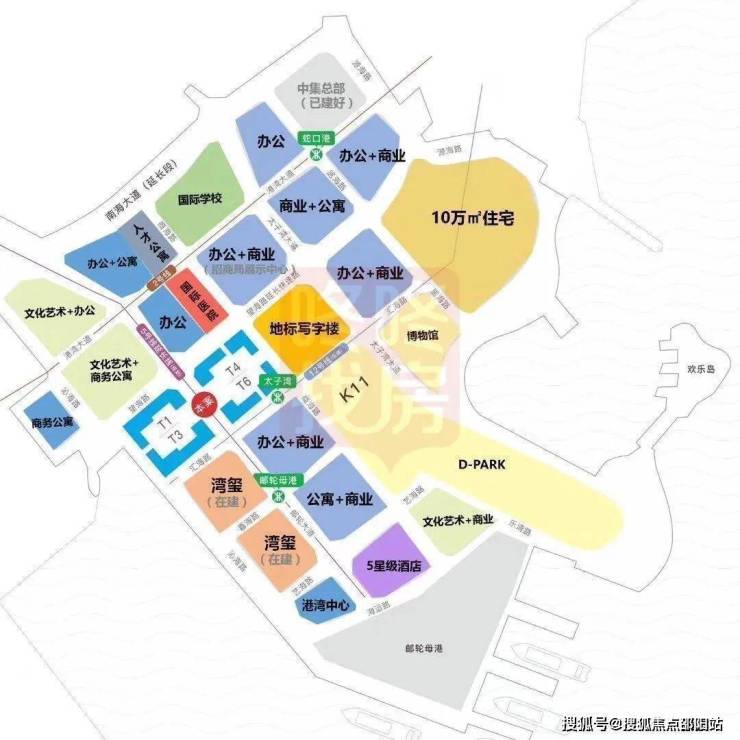 太子湾的商住项目分4期开发,周期长达9年。其中,三期规划有一栋350m的超高层写字楼;四期为住宅,即现在的蛇口港码头所处区域,届时会推倒重建,新的码头搬迁到太子湾母港边。