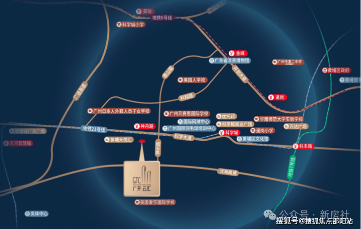项目位于黄埔区科学城中心研发的办公组团,南侧邻近连接广东主要城市的广深高速,北侧毗邻科学大道,交通便利。20分钟直达广州金融城、琶洲;30分钟直达珠江新城、新塘TOD、40分钟达广州南站;广州东、广州白云机场。