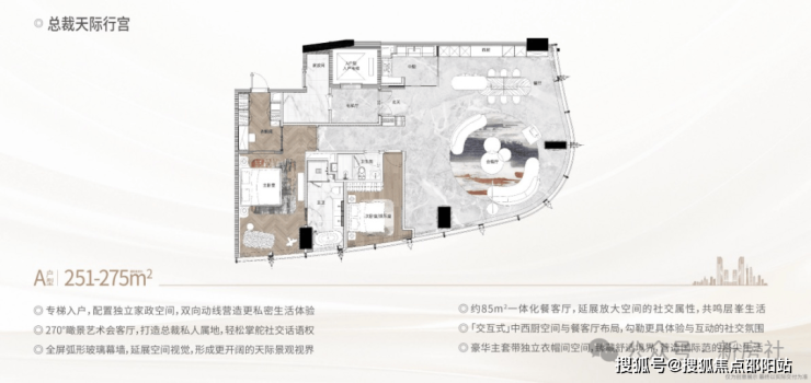 小区配套:项目集超甲办公、舒适大平层、总裁大平层、LOFT公寓、独栋办公、奢华酒店、高端商业等多元业态,打造事业、生活无界交融的一站式未来生活圈。