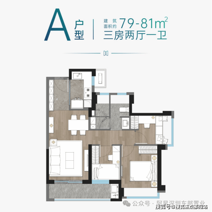 建面约79㎡三房两厅一卫