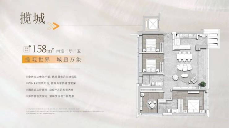 项目规模:建面约69万㎡滨江万象综合体(内含约2.2万㎡的滨江公园、约8.3万㎡的高端商办、约1.9万㎡的配建学校,约26.9万㎡万象城以及17万㎡三江万象大平层)。
