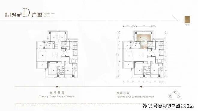 194㎡全景舱户型原报建是四房三卫(双套间)户型,偏厅结合2.4米的新规双阳台,景观面超过270°,观景开间达9.8米。