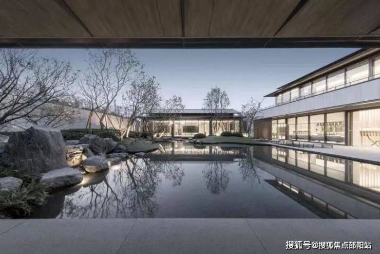 将“深远”、“平远”的国画画理,落位于中庭水院,并取意山水画中“物我为一”、“平淡简朴”的营造情境,实现人们返璞归真的内心渴望。