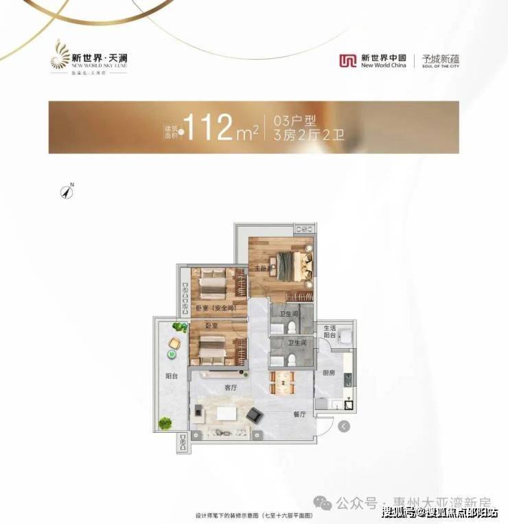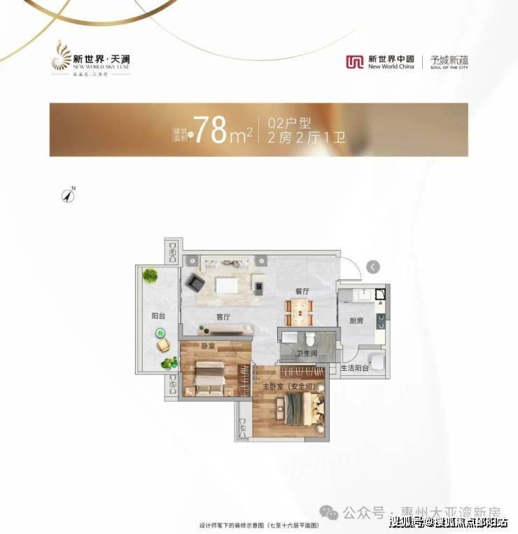 惠州 新世界天澜在售情况:1-2栋,3梯6户,总层高26层,建筑面积78-140㎡,2-4房,高层看江景。