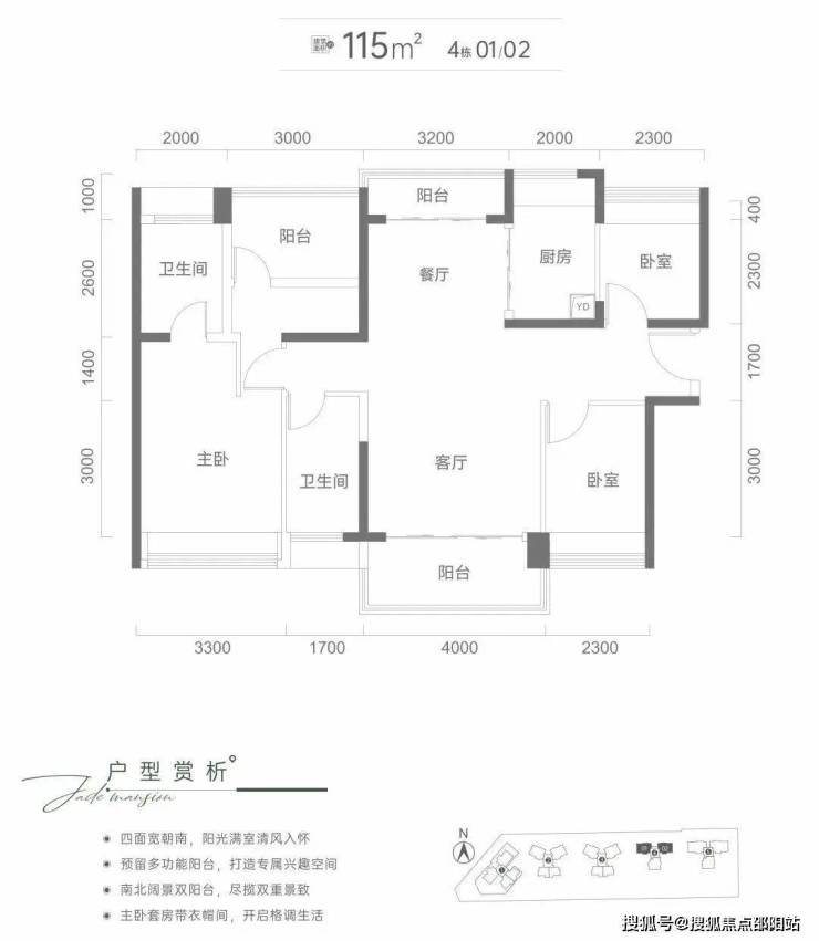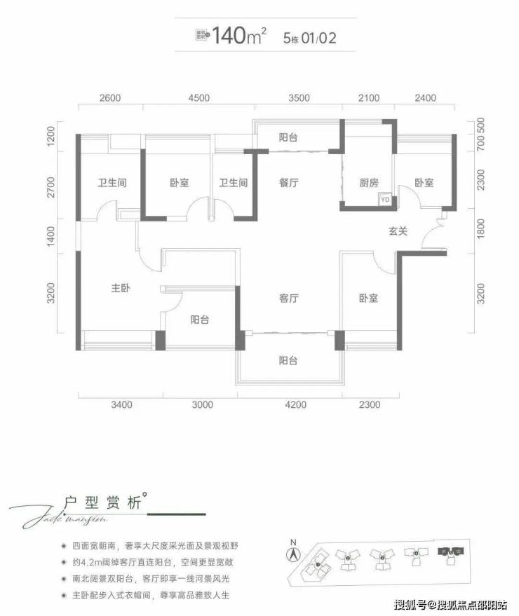 项目主要由5栋百米超高层住宅塔楼及商业配套组成,其中2、3、4栋32层,1、5栋31层,容积率约4.5,梯户比为2T3和2T4。