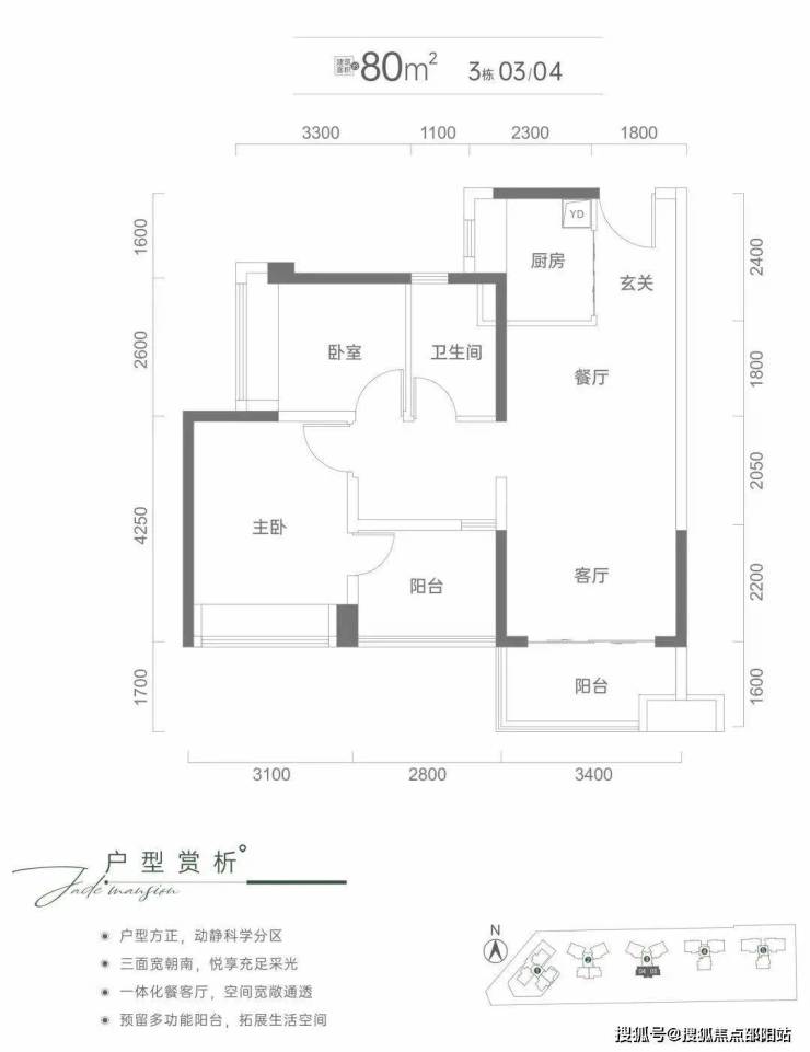 80㎡可以做正经三房,每个户型都有赠送一个阳台做房间。