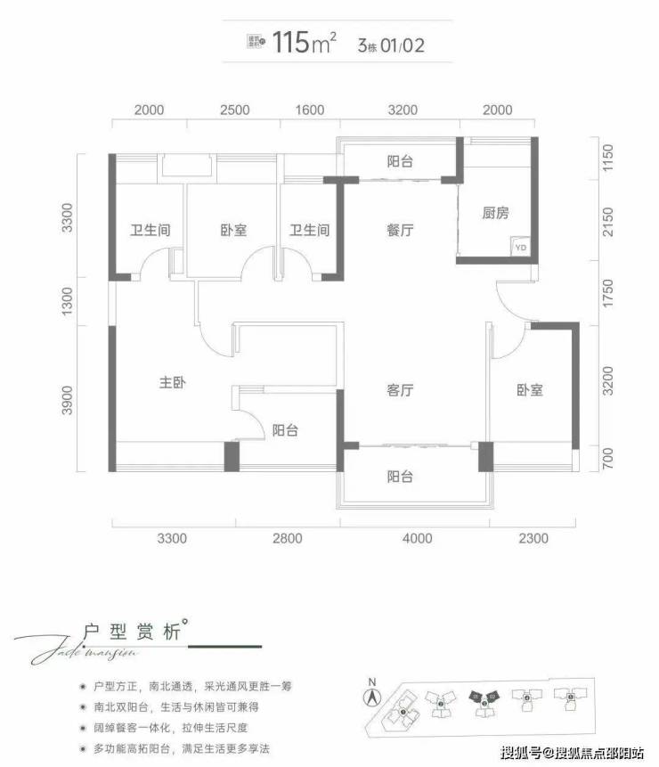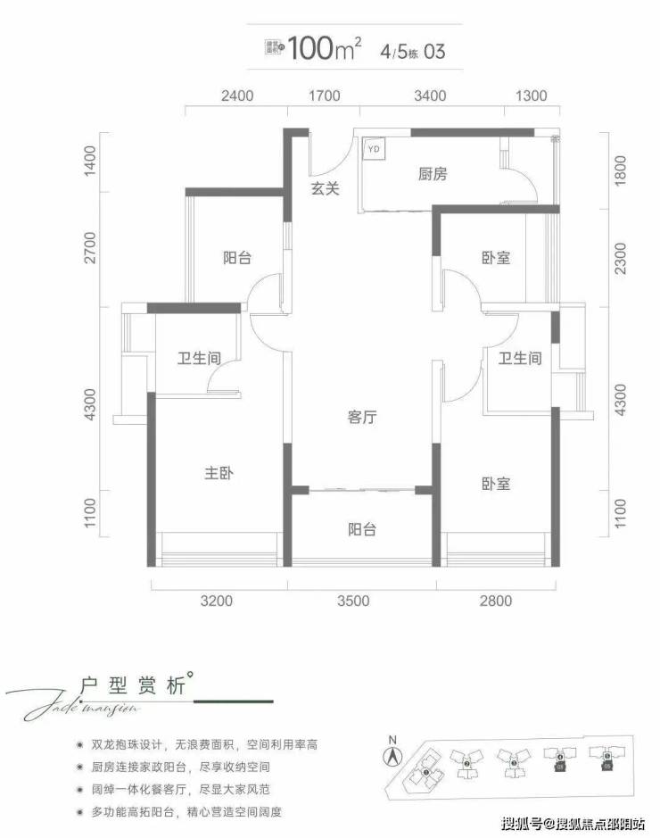 100-115可以做四房,100平这个户型是市场很喜欢的双龙抱珠户型