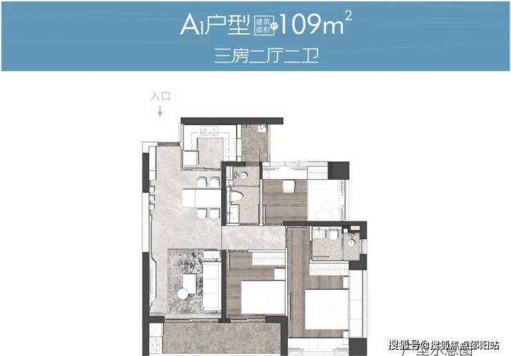 户型:109-111㎡3房,121-143㎡4房