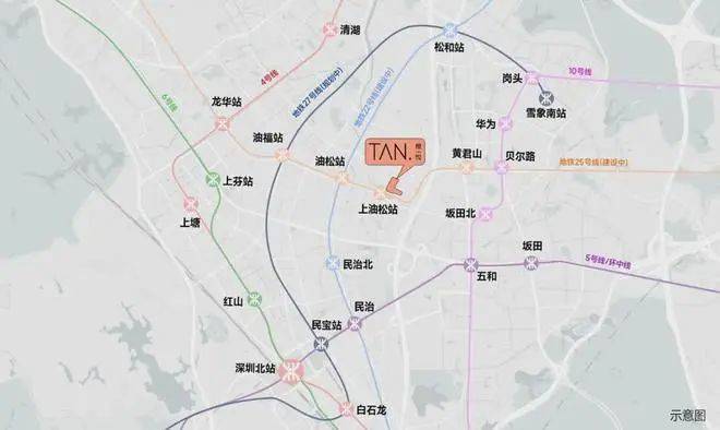 直线距离地铁25号线(一期)上油松站(建设中)约100米,同时25号线(建设中)与4号线、22号线(建设中)、27号线(建设中)交汇,一站一换乘,快速畅达南山深圳湾超级总部基地、福田CBD、坂田华为基地、罗湖等核心区。