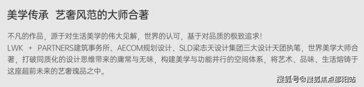 LWK+PARTNERS建筑事务所、AECOM、梁志天集团,从建筑到园林再到室内设计,清一色“顶尖”团队当纲。