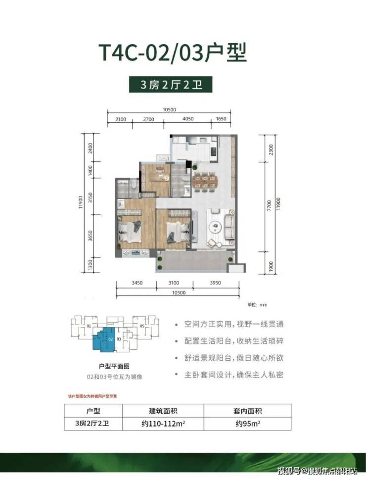 -全明户型,方正实用、公摊低,大主卧、超大景观阳台设计