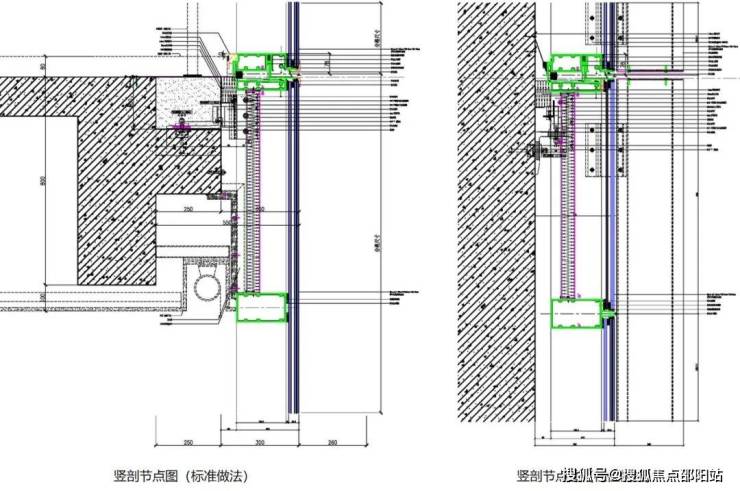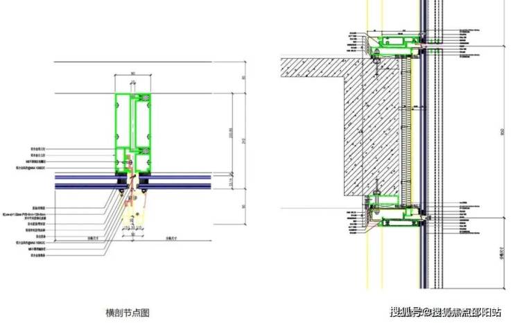 ▲ 酒店裙楼折线玻璃幕墙系统节点图