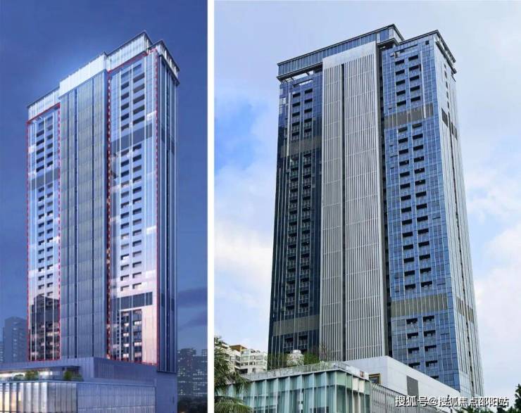 项目整体呈现双塔形象,包含酒店塔楼,公寓塔楼,商业裙楼,总建筑高度138.05米,汇集豪华酒店、高端公寓、商业和公共设施等多样业态。