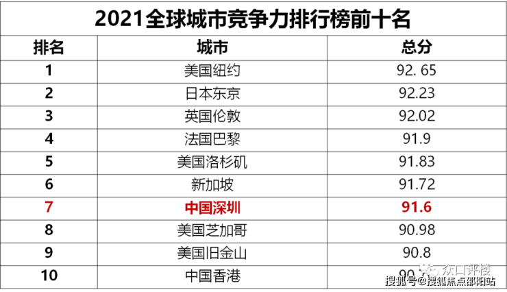 2021全球城市经济竞争力排名第7,是唯一进入10强的中国内地城市。
