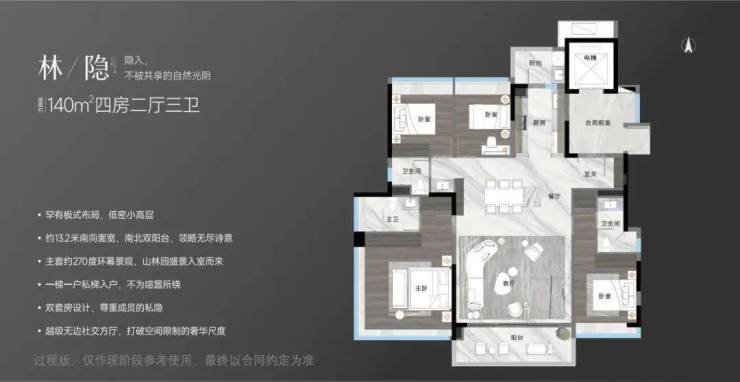 越秀观樾的建面约140平户型设计令人瞩目,其精细的布局和出色的居住体验展现了项目的高品质标准。