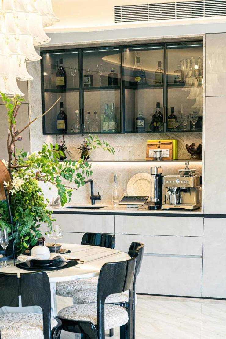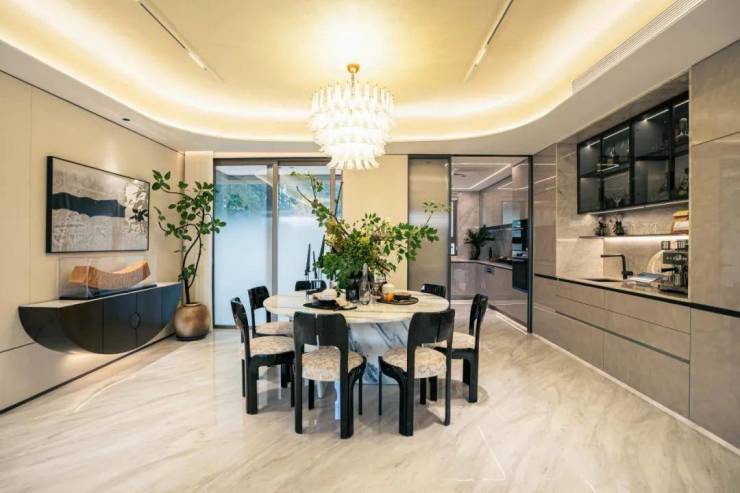 LDKB开放式互动空间的设计,让客厅、餐厅、厨房和阳台形成一个连贯且开放的整体,大大增加了空间的通透感和流动性。这种设计不仅提高了空间的使用效率,更使得家庭成员之间的互动更为紧密,加强了家庭氛围的营造。
