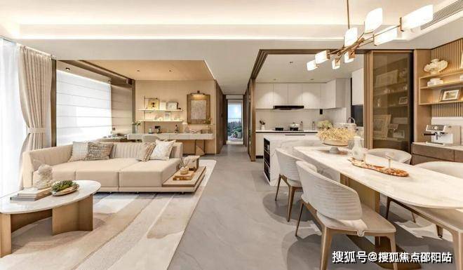 注重质感与尺度升级。LDKB无界方厅、瞰景阳台、独立书房、社交U型厨房以及主卧奢配阳台,空间大有所享。