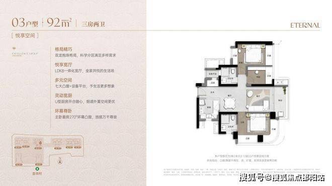 建面约92㎡三房悦奢臻品