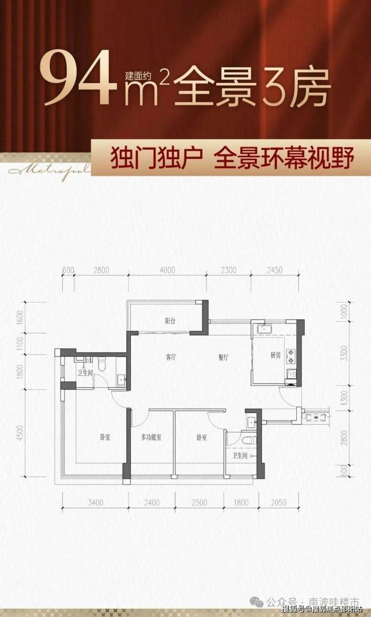 94㎡的3房2厅2卫,设计的是横厅南北通透格局,客餐厅6.3米开间,LDKB一体化,四开间朝南,卧室全南向,3个卧室分别做到了主卧15.3㎡/次卧8.5㎡/次卧8.16㎡(包含墙体飘窗),L型厨房,公卫三段式分离,得房率约77%(不含赠送),阳台主朝东北向。