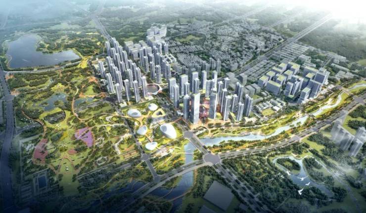 片区更新单元东依茅洲河生态绿廊,南邻明湖公园、湿地公园、地铁上盖公园3大公园,是一个被河道+公园半包围的项目。