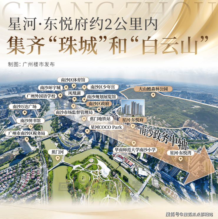 南沙也用超过十年成就了自己的中轴,便是星河·东悦府所在的“政务中轴”。