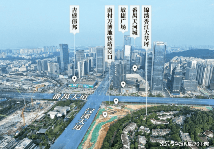 香江 1 号位于番禺大道北与朝阳东路交汇处,属于番禺大石板块,直线距离珠江新城约 10 公里,开车走新光快速,非高峰期 25 分钟左右能到天河。对于在天河、海珠上班的人来说,这个位置算比较折中,比住南沙、增城通勤时间更可控。周边有长隆旅游度假区、万博商务区等,生活配套和就业机会都比较丰富。