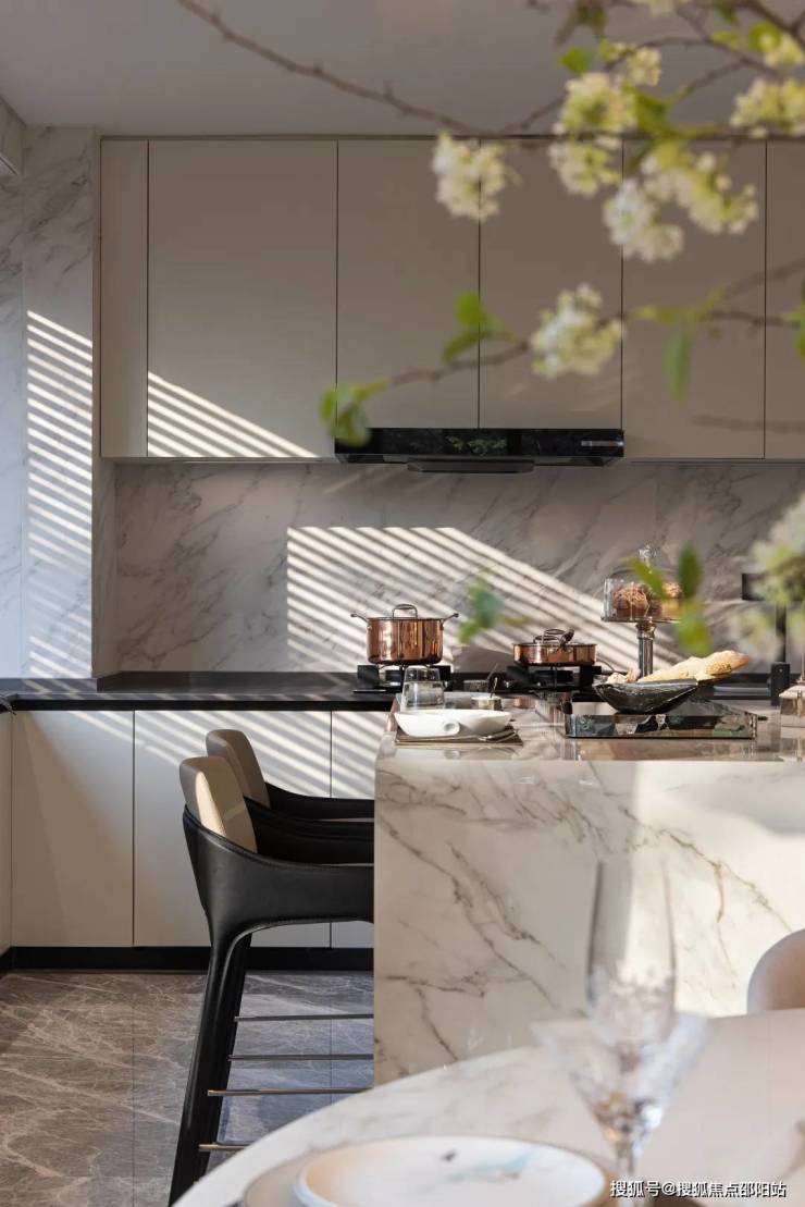 设计创新的半开放式厨房内,设有超大中岛台,在家可以享受烘焙,与好友来个悠闲的下午茶。