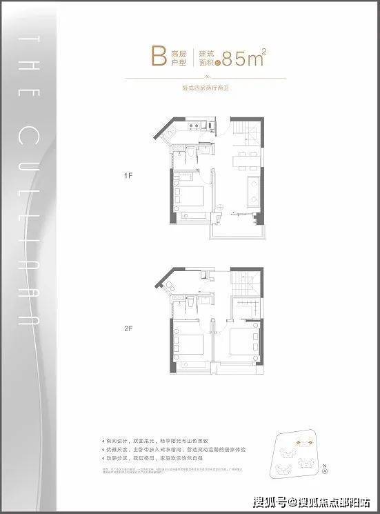 B户型:建面约85㎡复式四房两厅两卫