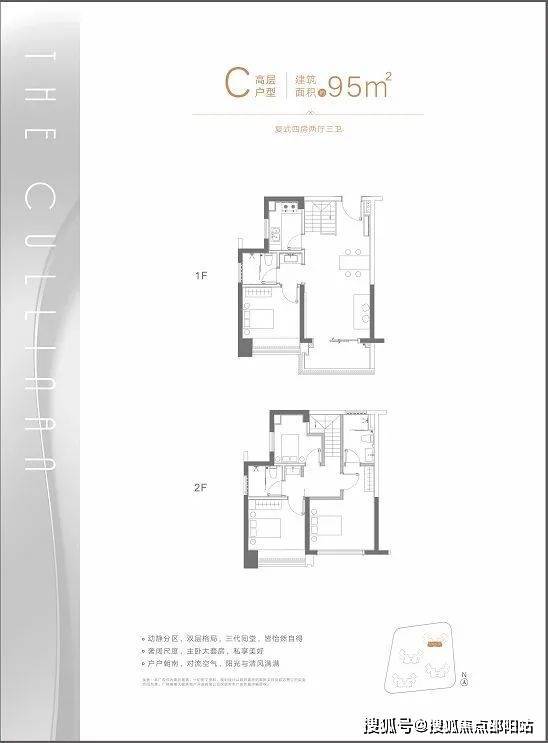 C户型:建面约95㎡复式四房两厅三卫