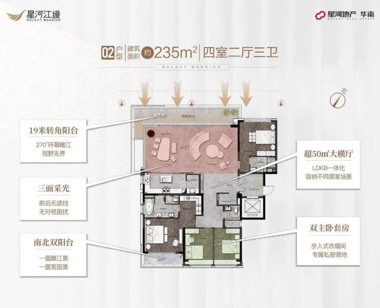 产品本身,更是亮点十足:LOW-E玻璃、LDKB一体化、超宽大阳台、双主卧套间、高得房率、三卫浴空间等,均是项目产品力的高调炫技。