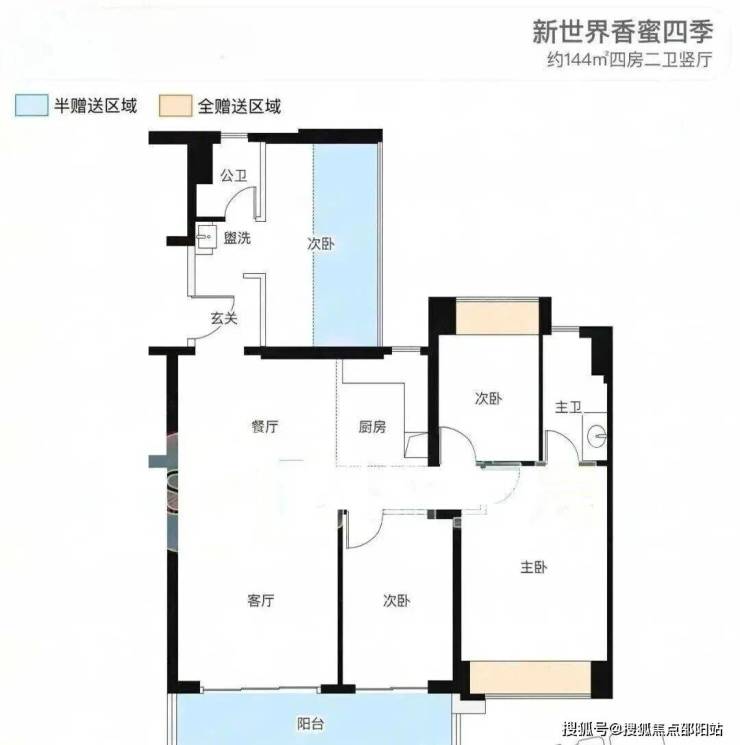 建筑面积约144㎡4房2卫,有竖厅和通透两种户型可供选择。西南朝向香蜜湖莲花山