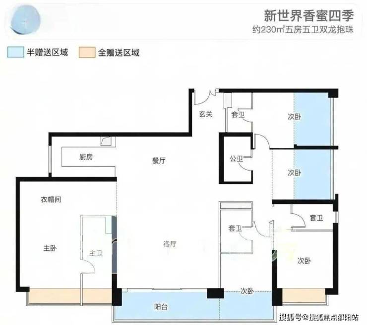 建筑面积约230㎡5房5卫,3梯3户,朝向西南。