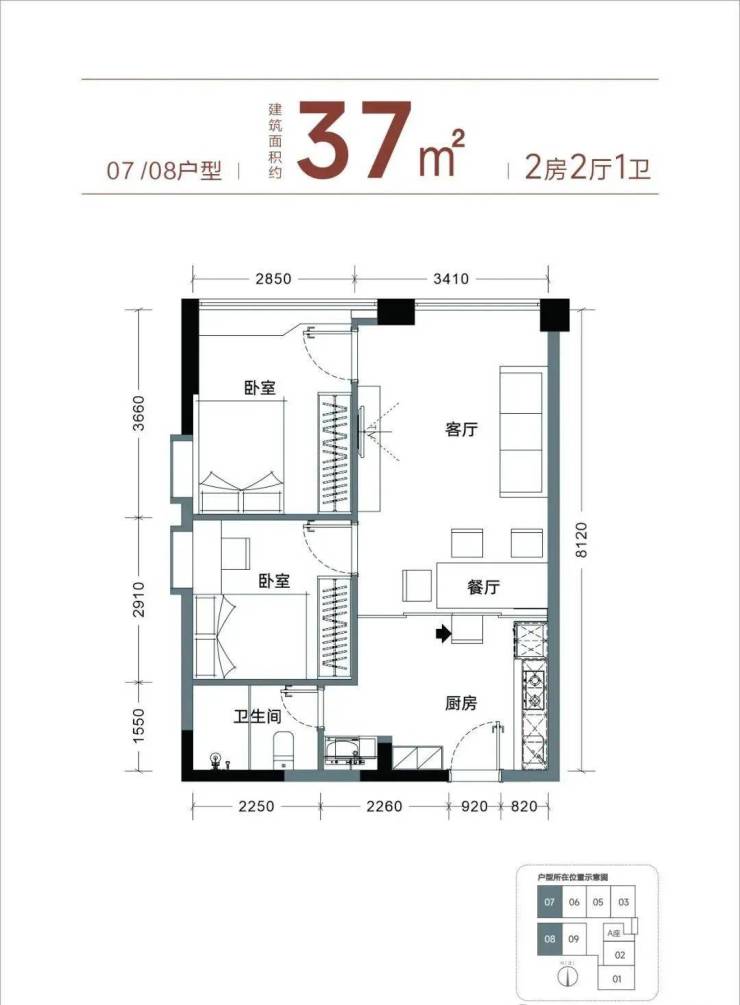 【产品面积】约37㎡小两房(实际套内使用面积接近54㎡)