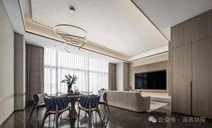客餐厅贯通,以流畅手法统一材质。客厅巧妙收窄,拓宽视觉,增大收纳。阳光成自然与空间纽带,光影变幻踏入艺术之境。动静有致,似云卷云舒,重塑家的肌理色彩,尽显悠然和谐意境,理想家园游离尘世,漫步理想之中。