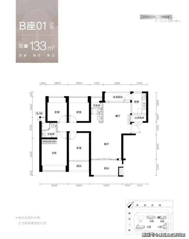 梯户比:A-C座2梯4户,D座2梯5户