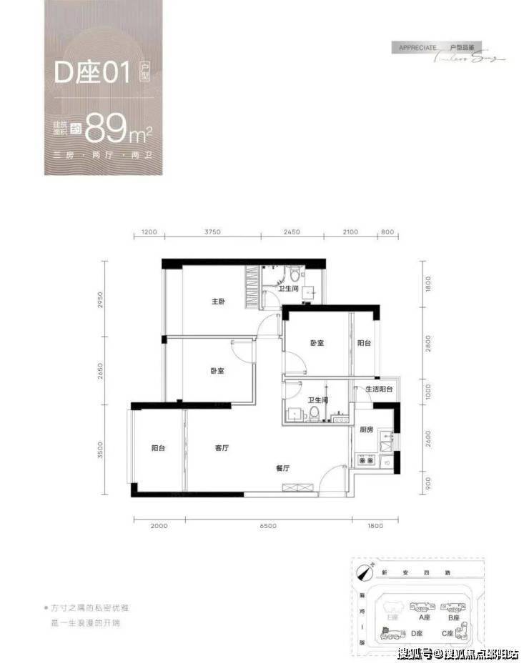 约89㎡精装3房,刚需改善性价比之选:东南/西南朝向