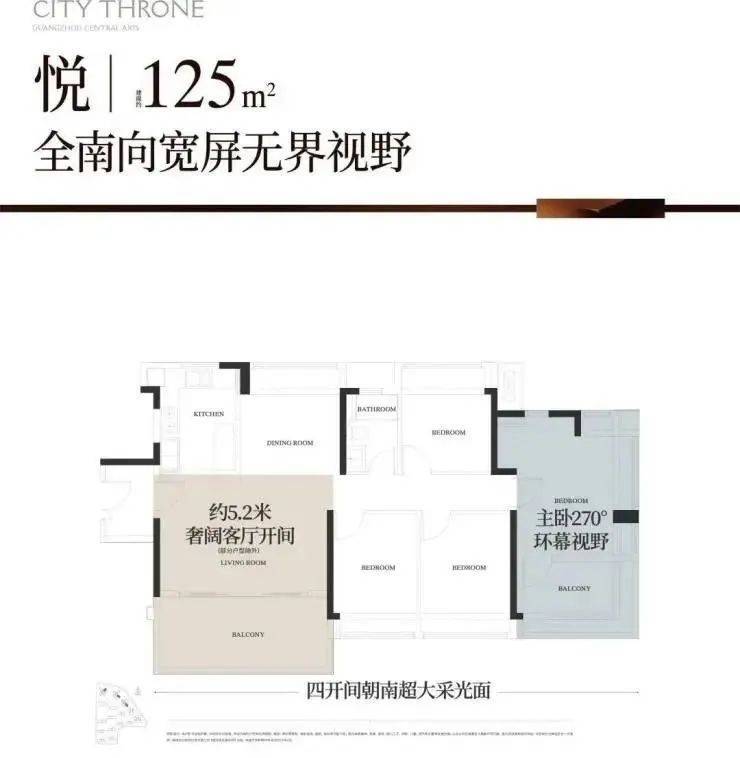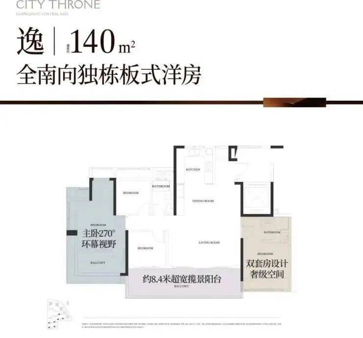 位于西边户的户型,三面景观,西面白云山景观,南向广州中轴+园林景观,北向白云山+园景;再加上约21米270°云山观景面,视觉享受拉满了。