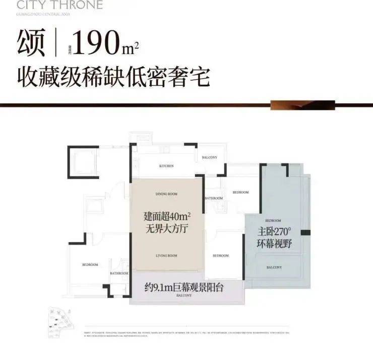 是珠江新城6公里范围之内,唯一一个做到了独栋、低密、板式、大平层的一个项目。