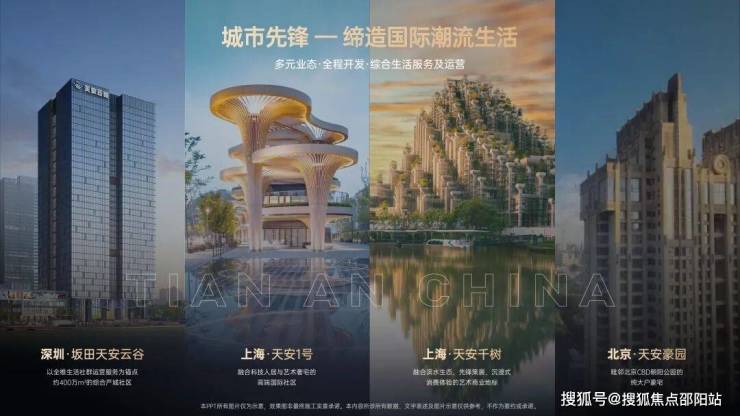 城市先锋:集团在北京、上海及深圳均有深厚的豪宅与地标开发经验,例如:上海天安一号,以及上海知名地标建筑“天安千树”,北京的天安豪园;