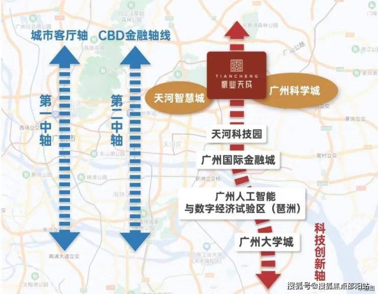 项目位于广州第三发展中轴线“科技创新轴”,天河智慧城和黄埔科学城双城交汇之地,汇聚了金融总部、人工智能、数字经济、智能制造,是一条全新的“科技创新中轴”。