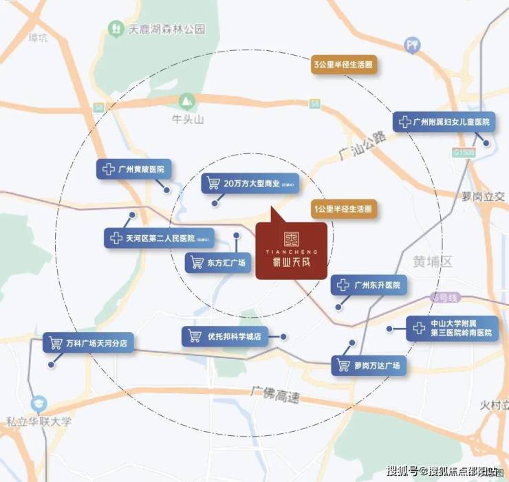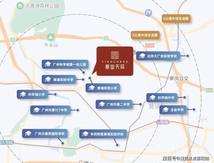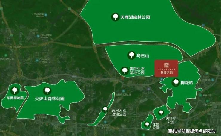 周边天河湿地公园、黄陂生态湿地公园、科学城体育公园、天鹿湖森林公园、华南植物园、火炉山森林公园等6大公园环绕。