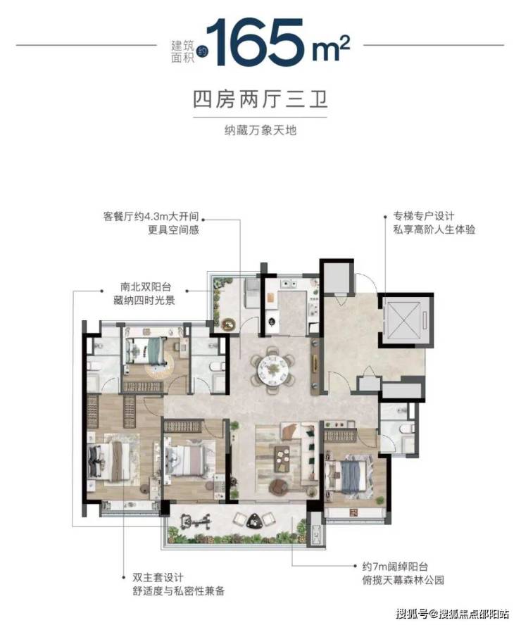 振业天成2.0容积率,领先广州94%的楼盘;精心打造建面约105-165㎡天赋型低密藏品,南北通透,私密单边。